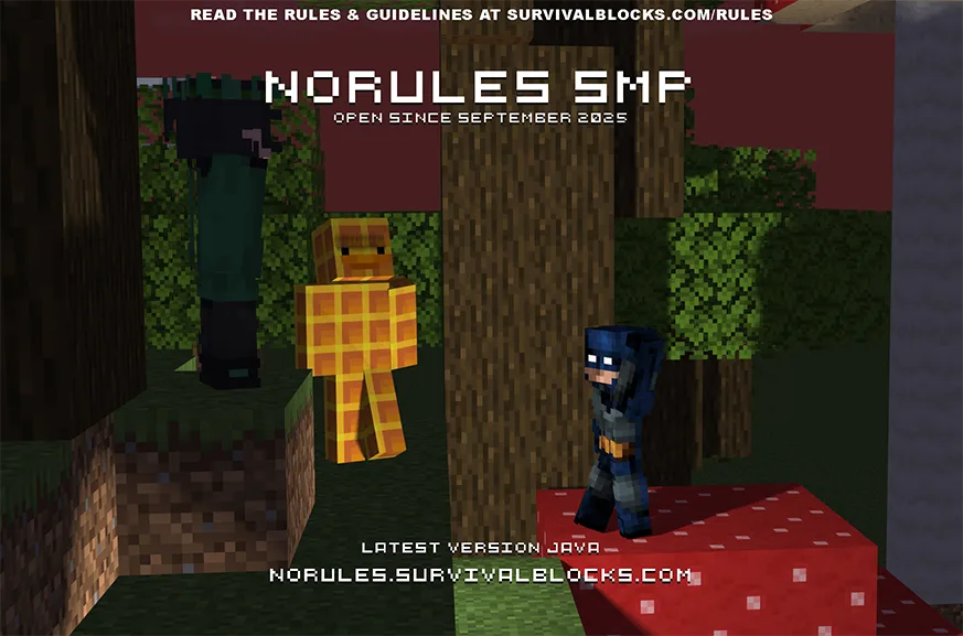 Ready to test your survival skills? Join our NoRules SMP, the beta server for the upcoming Survival Blocks Network. With no rules, no limits, and no censorship, this is the ultimate anarchy experience for Minecraft Java Edition players. The server is open and ready for you to build, grief, and conquer.